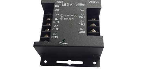 L’amplificatore di segnale da la possibilità di estendere la potenza ed il segnale stesso della centralina master ( solo centraline serie Basic) per un max di 15mt modulo led RGB per ogni amplificatore.