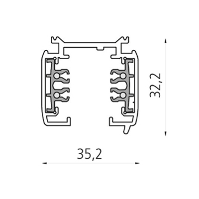 Base binario standard serie Track. Disponibile bianco o nero. Articolo componibile con spot orientabili. Alimentazione 220V.